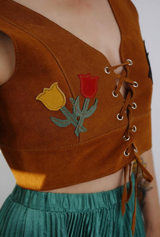 Vintage Apricot Cotton Woven Circle Skirt - 6
