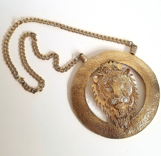 Vintage Massive Tiger Medallion Necklace