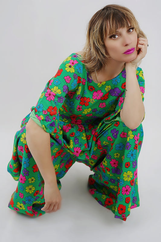 Sold outVintage Neon Daisy Palazzo Jumpsuit