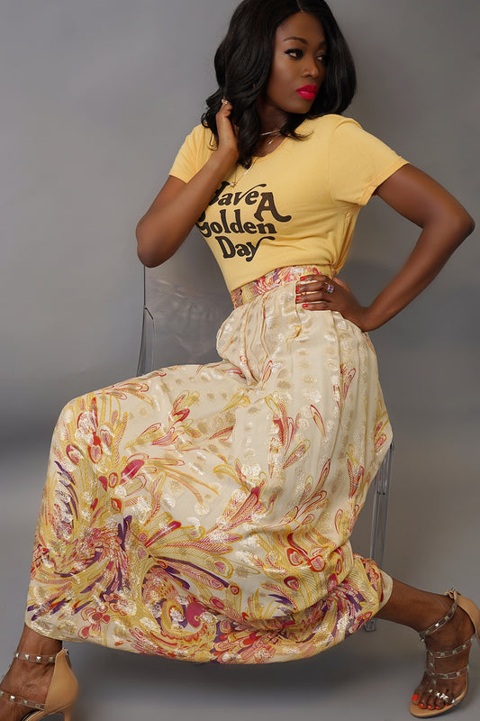 Vintage Metallic Paisley Maxi Skirt - S