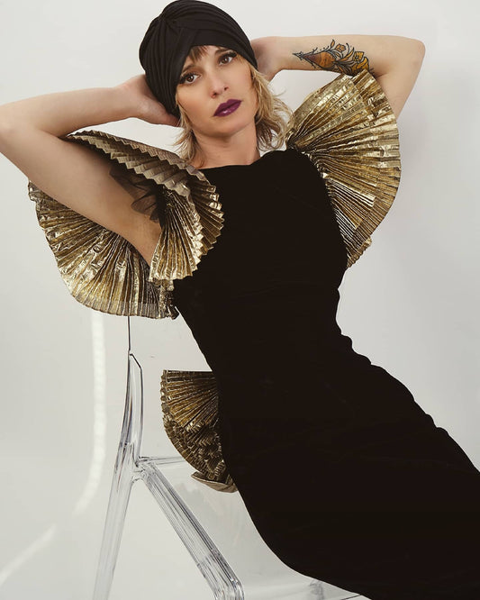 Vintage Neiman Marcus Gold Lamé Pleated Sleeve Dress