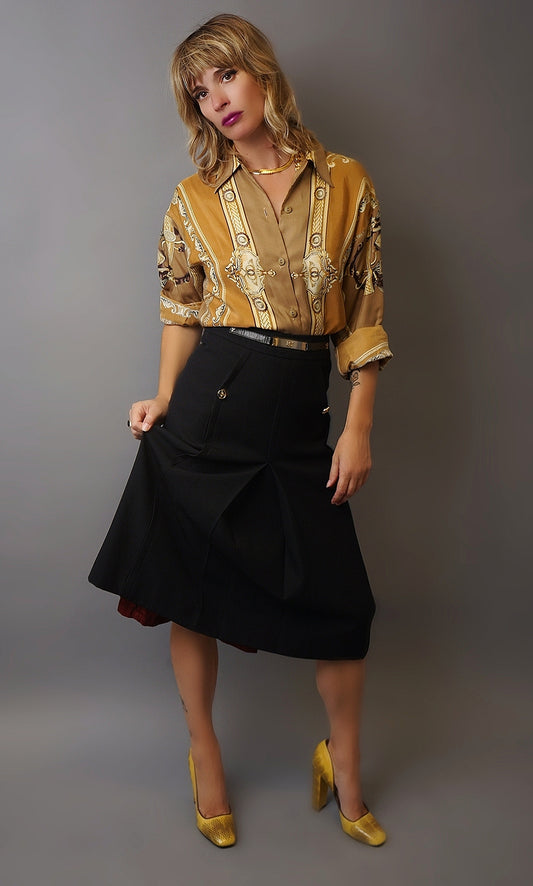 Vintage A-Line Metal Belt Skirt - M